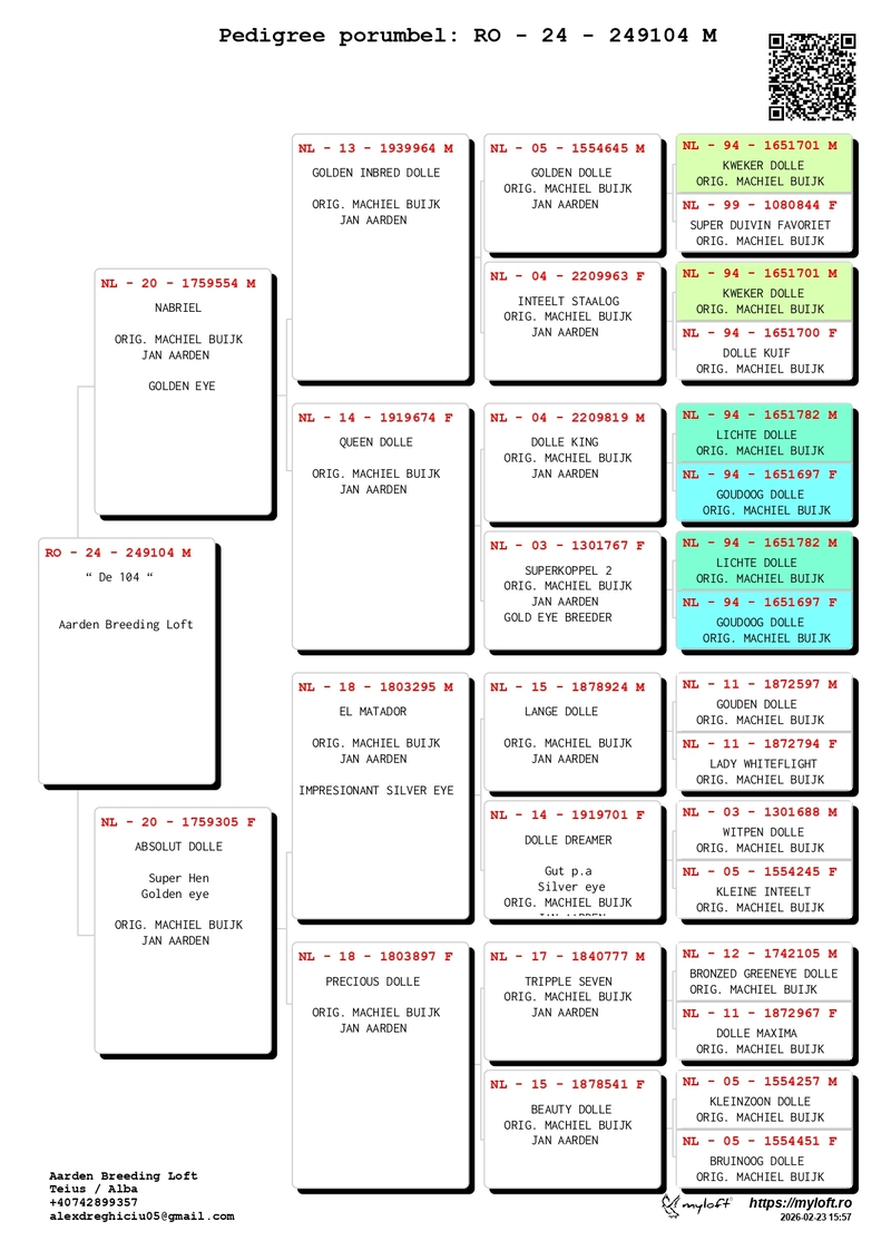 Aarden Breeding Loft is a breeding center dedicated exclusively to Jan Aarden pigeons, following the Machiel Buijk bloodline, with the primary mission of preserving, improving, and developing this elite genetic strain in pure blood.