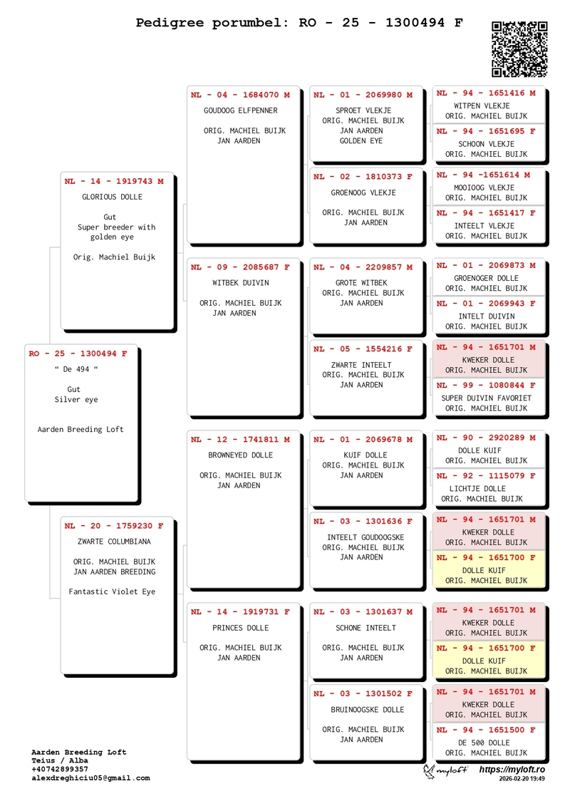 Aarden Breeding Loft is a breeding center dedicated exclusively to Jan Aarden pigeons, following the Machiel Buijk bloodline, with the primary mission of preserving, improving, and developing this elite genetic strain in pure blood.