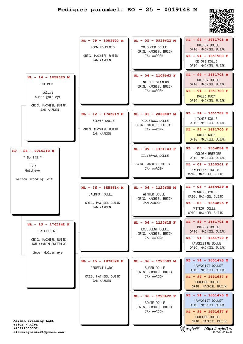 Aarden Breeding Loft is a breeding center dedicated exclusively to Jan Aarden pigeons, following the Machiel Buijk bloodline, with the primary mission of preserving, improving, and developing this elite genetic strain in pure blood.
