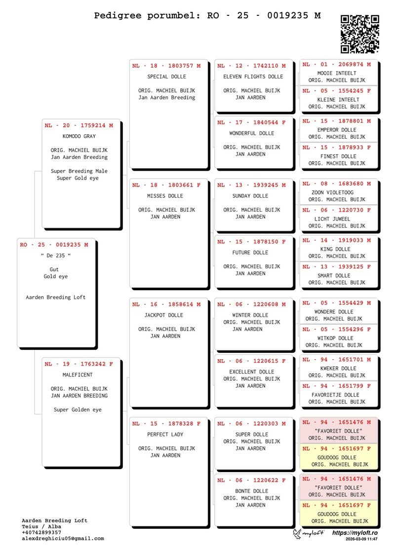 Aarden Breeding Loft is a breeding center dedicated exclusively to Jan Aarden pigeons, following the Machiel Buijk bloodline, with the primary mission of preserving, improving, and developing this elite genetic strain in pure blood.