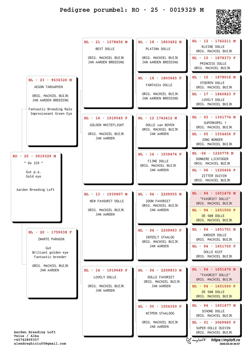 Aarden Breeding Loft is a breeding center dedicated exclusively to Jan Aarden pigeons, following the Machiel Buijk bloodline, with the primary mission of preserving, improving, and developing this elite genetic strain in pure blood.