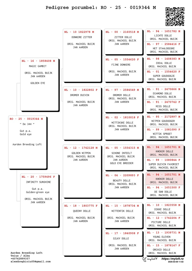 Aarden Breeding Loft is a breeding center dedicated exclusively to Jan Aarden pigeons, following the Machiel Buijk bloodline, with the primary mission of preserving, improving, and developing this elite genetic strain in pure blood.