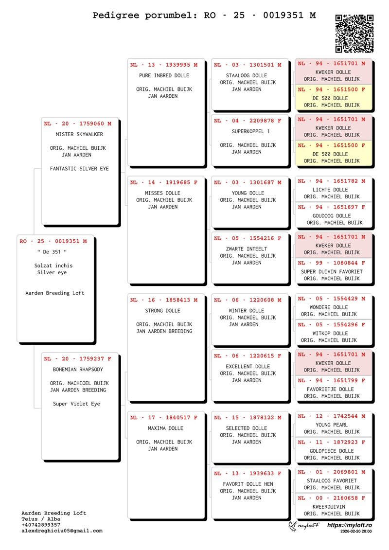 Aarden Breeding Loft is a breeding center dedicated exclusively to Jan Aarden pigeons, following the Machiel Buijk bloodline, with the primary mission of preserving, improving, and developing this elite genetic strain in pure blood.