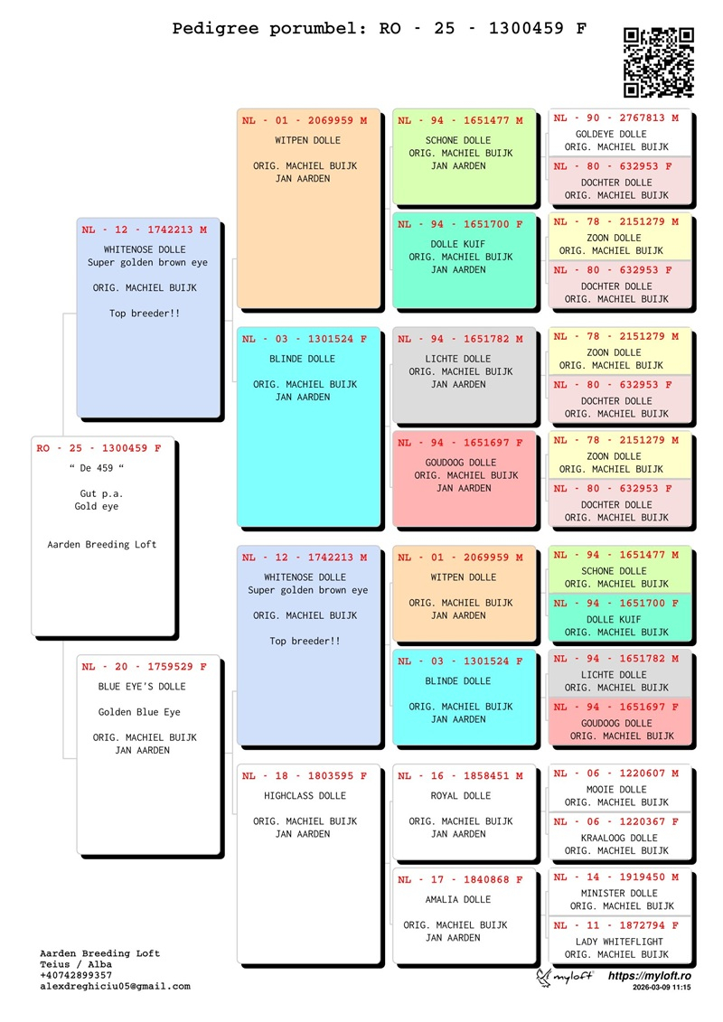 Aarden Breeding Loft is a breeding center dedicated exclusively to Jan Aarden pigeons, following the Machiel Buijk bloodline, with the primary mission of preserving, improving, and developing this elite genetic strain in pure blood.