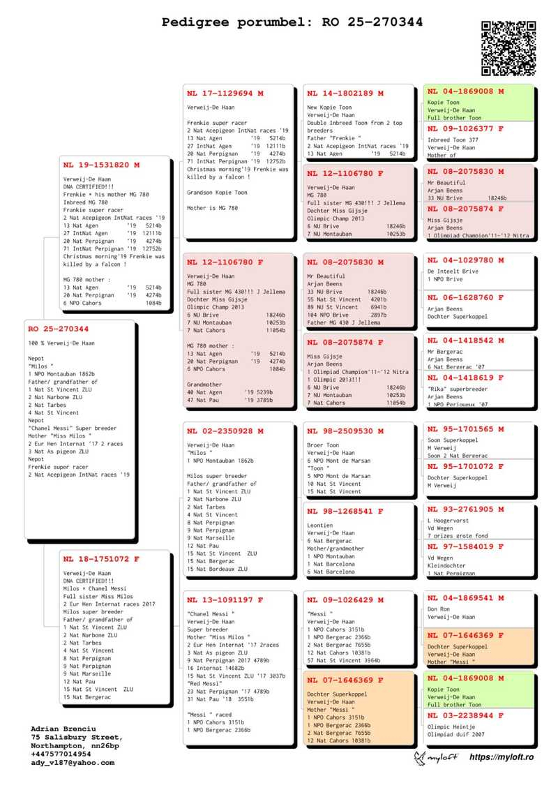 The genetic quality of pigeons bred by Adrian Brenciu is also confirmed by the outstanding results achieved by other renowned fanciers who have introduced his bloodlines into their lofts: