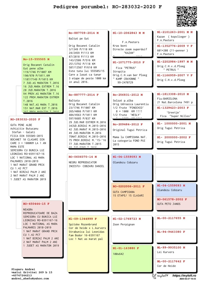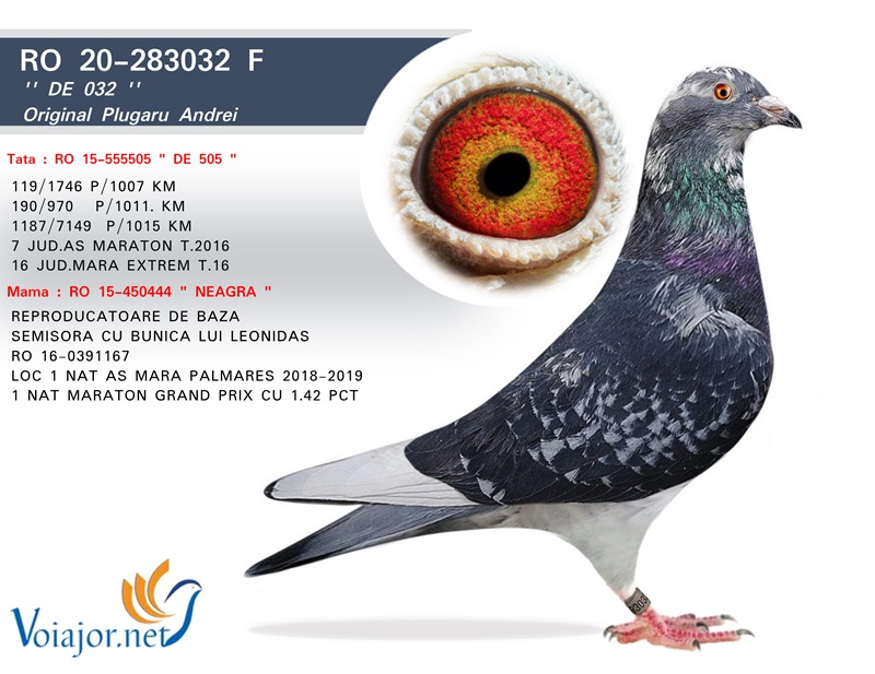 My name is Plugaru Andrei and I live in Vaslui, Vaslui County. I have been active as a pigeon fancier since 2010 as a member of the Vaslui branch, the year when results also began to appear (1st place Ace Long Distance, 3rd place Long Distance, 4th place Grand Long Distance, 21st place Marathon, and in 2012 the same pigeon achieved 2nd place Vaslui County Berlin National 1217 km). I am passionate about breeding long-distance, marathon and extreme marathon pigeons, an activity that has offered me many satisfactions and personal achievements over time, managing to remain every year at least in the county top 3. At the beginning I focused on long-distance races, later directing my selection and breeding towards marathon and extreme marathon, investing in established bloodlines from various breeders from Romania (Henning Family, Miron Daniel, Butucanu Stefan, Cordeanu Vasile, Fildan Vlad, as well as from abroad. Below I present some of the results achieved in the year 2025: