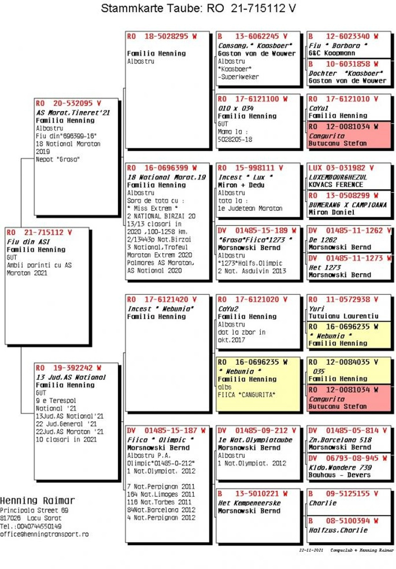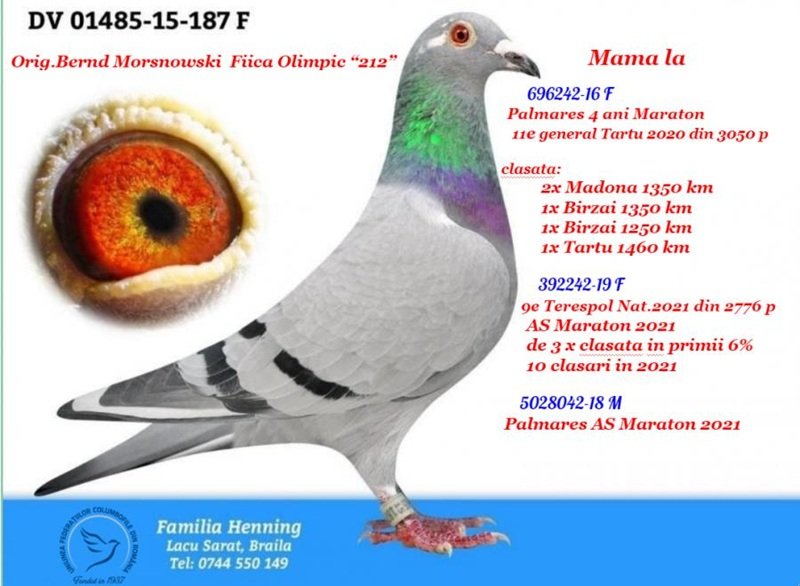 My name is Plugaru Andrei and I live in Vaslui, Vaslui County. I have been active as a pigeon fancier since 2010 as a member of the Vaslui branch, the year when results also began to appear (1st place Ace Long Distance, 3rd place Long Distance, 4th place Grand Long Distance, 21st place Marathon, and in 2012 the same pigeon achieved 2nd place Vaslui County Berlin National 1217 km). I am passionate about breeding long-distance, marathon and extreme marathon pigeons, an activity that has offered me many satisfactions and personal achievements over time, managing to remain every year at least in the county top 3. At the beginning I focused on long-distance races, later directing my selection and breeding towards marathon and extreme marathon, investing in established bloodlines from various breeders from Romania (Henning Family, Miron Daniel, Butucanu Stefan, Cordeanu Vasile, Fildan Vlad, as well as from abroad. Below I present some of the results achieved in the year 2025: