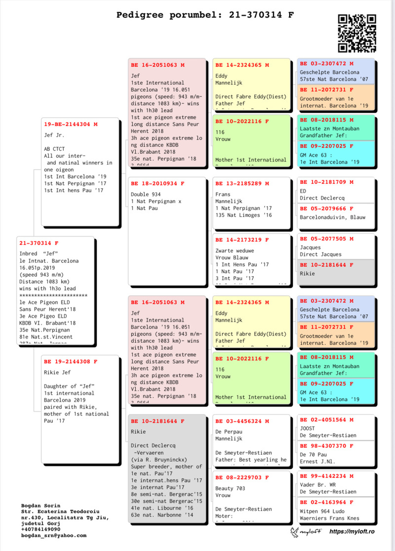 In his acquisitions, Mr. Sorin includes youngsters directly from the most prestigious names in Romania, as well as from the avian elite of Europe. His breeding stock comprises pigeons from internationally renowned breeders such as Gerard Schalwijk, Jelle Jellema, Kipp und Sohne, Cor de Heijde, Magirescu + Ojog + Dorneanu, among others. In this auction, you will find descendants from elite lines such as New Laureaat, Kleine Jade, Special One, Zwart Goud, Orange Oil, Barcelona King, Golden Glory, and many more.