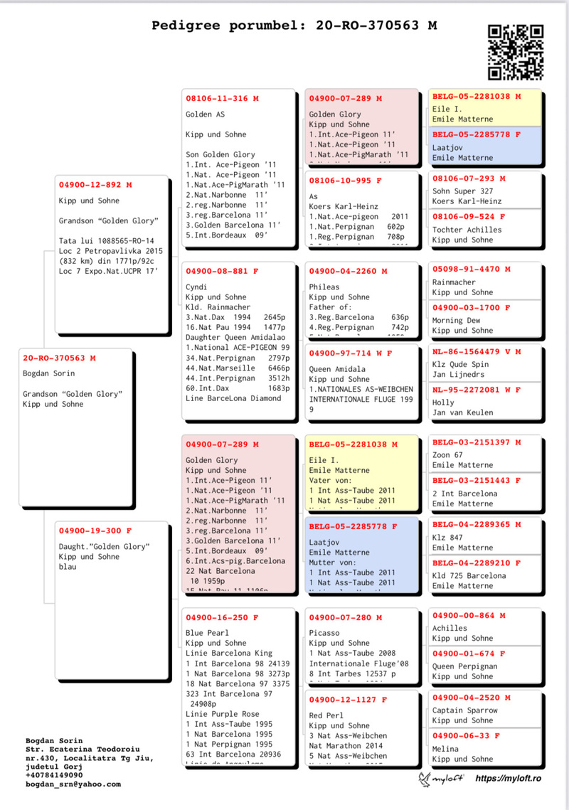 In his acquisitions, Mr. Sorin includes youngsters directly from the most prestigious names in Romania, as well as from the avian elite of Europe. His breeding stock comprises pigeons from internationally renowned breeders such as Gerard Schalwijk, Jelle Jellema, Kipp und Sohne, Cor de Heijde, Magirescu + Ojog + Dorneanu, among others. In this auction, you will find descendants from elite lines such as New Laureaat, Kleine Jade, Special One, Zwart Goud, Orange Oil, Barcelona King, Golden Glory, and many more.