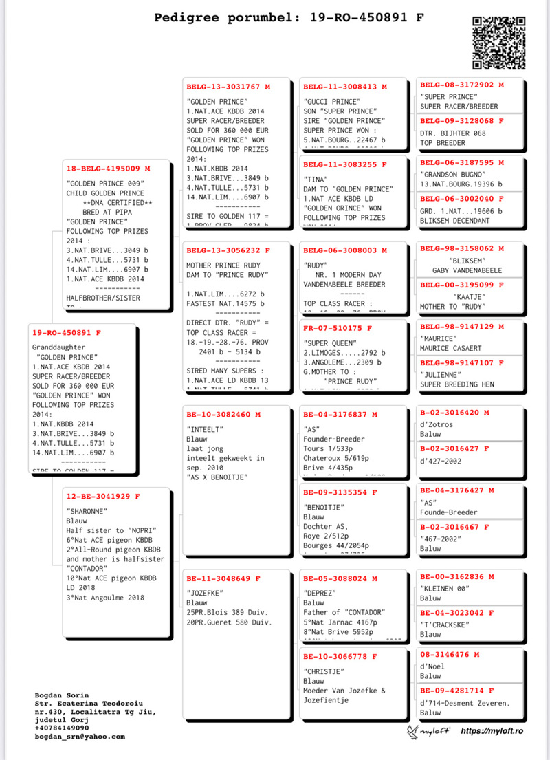 In his acquisitions, Mr. Sorin includes youngsters directly from the most prestigious names in Romania, as well as from the avian elite of Europe. His breeding stock comprises pigeons from internationally renowned breeders such as Gerard Schalwijk, Jelle Jellema, Kipp und Sohne, Cor de Heijde, Magirescu + Ojog + Dorneanu, among others. In this auction, you will find descendants from elite lines such as New Laureaat, Kleine Jade, Special One, Zwart Goud, Orange Oil, Barcelona King, Golden Glory, and many more.