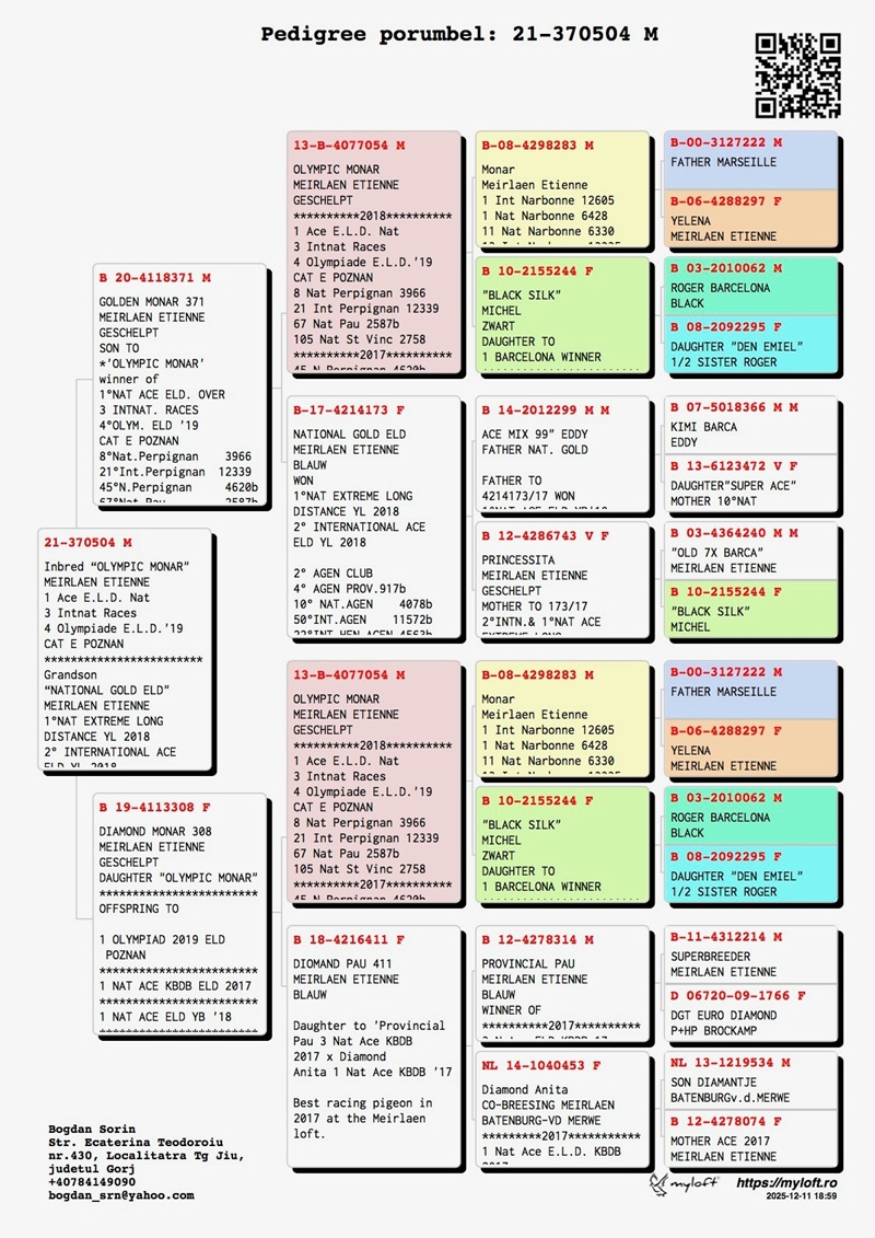 In his acquisitions, Mr. Sorin includes youngsters directly from the most prestigious names in Romania, as well as from the avian elite of Europe. His breeding stock comprises pigeons from internationally renowned breeders such as Gerard Schalwijk, Jelle Jellema, Kipp und Sohne, Cor de Heijde, Magirescu + Ojog + Dorneanu, among others. In this auction, you will find descendants from elite lines such as New Laureaat, Kleine Jade, Special One, Zwart Goud, Orange Oil, Barcelona King, Golden Glory, and many more.