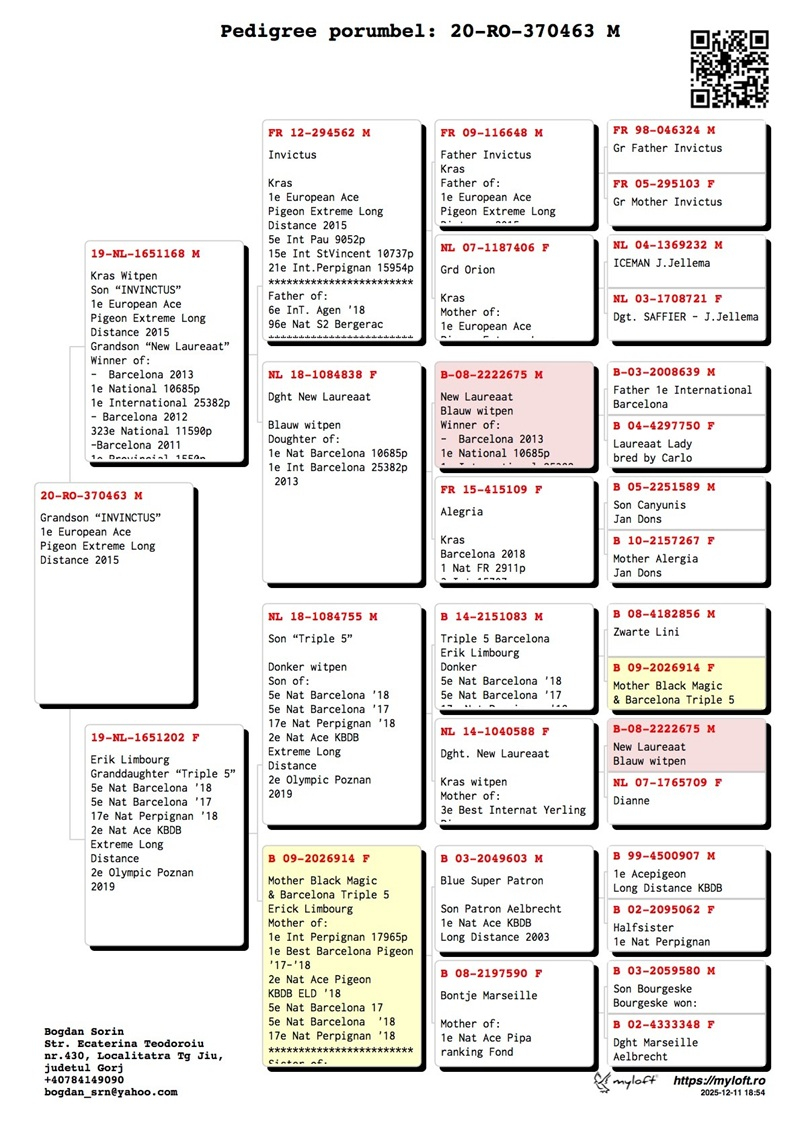 In his acquisitions, Mr. Sorin includes youngsters directly from the most prestigious names in Romania, as well as from the avian elite of Europe. His breeding stock comprises pigeons from internationally renowned breeders such as Gerard Schalwijk, Jelle Jellema, Kipp und Sohne, Cor de Heijde, Magirescu + Ojog + Dorneanu, among others. In this auction, you will find descendants from elite lines such as New Laureaat, Kleine Jade, Special One, Zwart Goud, Orange Oil, Barcelona King, Golden Glory, and many more.