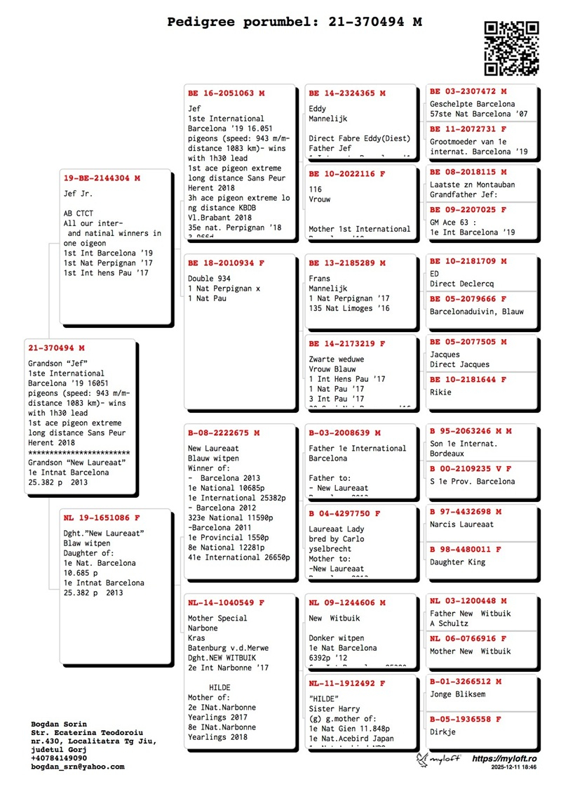 In his acquisitions, Mr. Sorin includes youngsters directly from the most prestigious names in Romania, as well as from the avian elite of Europe. His breeding stock comprises pigeons from internationally renowned breeders such as Gerard Schalwijk, Jelle Jellema, Kipp und Sohne, Cor de Heijde, Magirescu + Ojog + Dorneanu, among others. In this auction, you will find descendants from elite lines such as New Laureaat, Kleine Jade, Special One, Zwart Goud, Orange Oil, Barcelona King, Golden Glory, and many more.