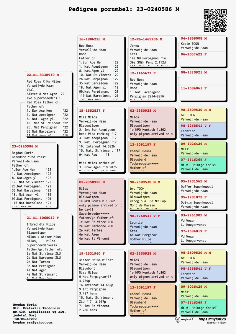 In his acquisitions, Mr. Sorin includes youngsters directly from the most prestigious names in Romania, as well as from the avian elite of Europe. His breeding stock comprises pigeons from internationally renowned breeders such as Gerard Schalwijk, Jelle Jellema, Kipp und Sohne, Cor de Heijde, Magirescu + Ojog + Dorneanu, among others. In this auction, you will find descendants from elite lines such as New Laureaat, Kleine Jade, Special One, Zwart Goud, Orange Oil, Barcelona King, Golden Glory, and many more.