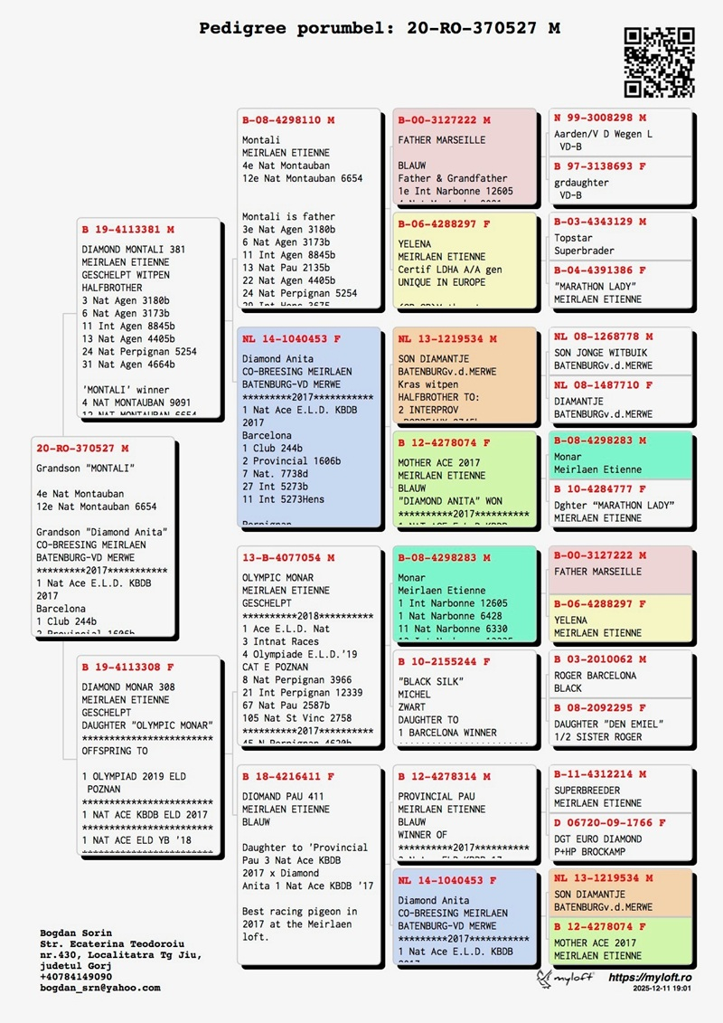 In his acquisitions, Mr. Sorin includes youngsters directly from the most prestigious names in Romania, as well as from the avian elite of Europe. His breeding stock comprises pigeons from internationally renowned breeders such as Gerard Schalwijk, Jelle Jellema, Kipp und Sohne, Cor de Heijde, Magirescu + Ojog + Dorneanu, among others. In this auction, you will find descendants from elite lines such as New Laureaat, Kleine Jade, Special One, Zwart Goud, Orange Oil, Barcelona King, Golden Glory, and many more.