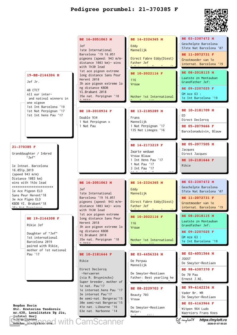 In his acquisitions, Mr. Sorin includes youngsters directly from the most prestigious names in Romania, as well as from the avian elite of Europe. His breeding stock comprises pigeons from internationally renowned breeders such as Gerard Schalwijk, Jelle Jellema, Kipp und Sohne, Cor de Heijde, Magirescu + Ojog + Dorneanu, among others. In this auction, you will find descendants from elite lines such as New Laureaat, Kleine Jade, Special One, Zwart Goud, Orange Oil, Barcelona King, Golden Glory, and many more.