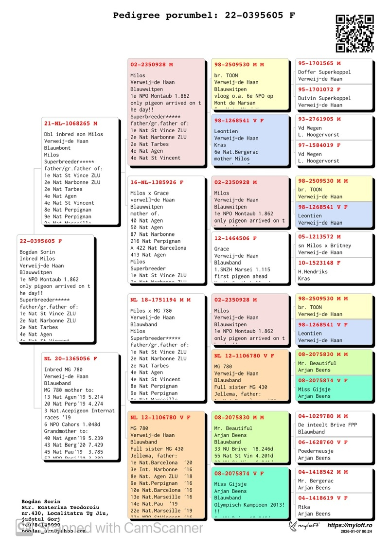 In his acquisitions, Mr. Sorin includes youngsters directly from the most prestigious names in Romania, as well as from the avian elite of Europe. His breeding stock comprises pigeons from internationally renowned breeders such as Gerard Schalwijk, Jelle Jellema, Kipp und Sohne, Cor de Heijde, Magirescu + Ojog + Dorneanu, among others. In this auction, you will find descendants from elite lines such as New Laureaat, Kleine Jade, Special One, Zwart Goud, Orange Oil, Barcelona King, Golden Glory, and many more.