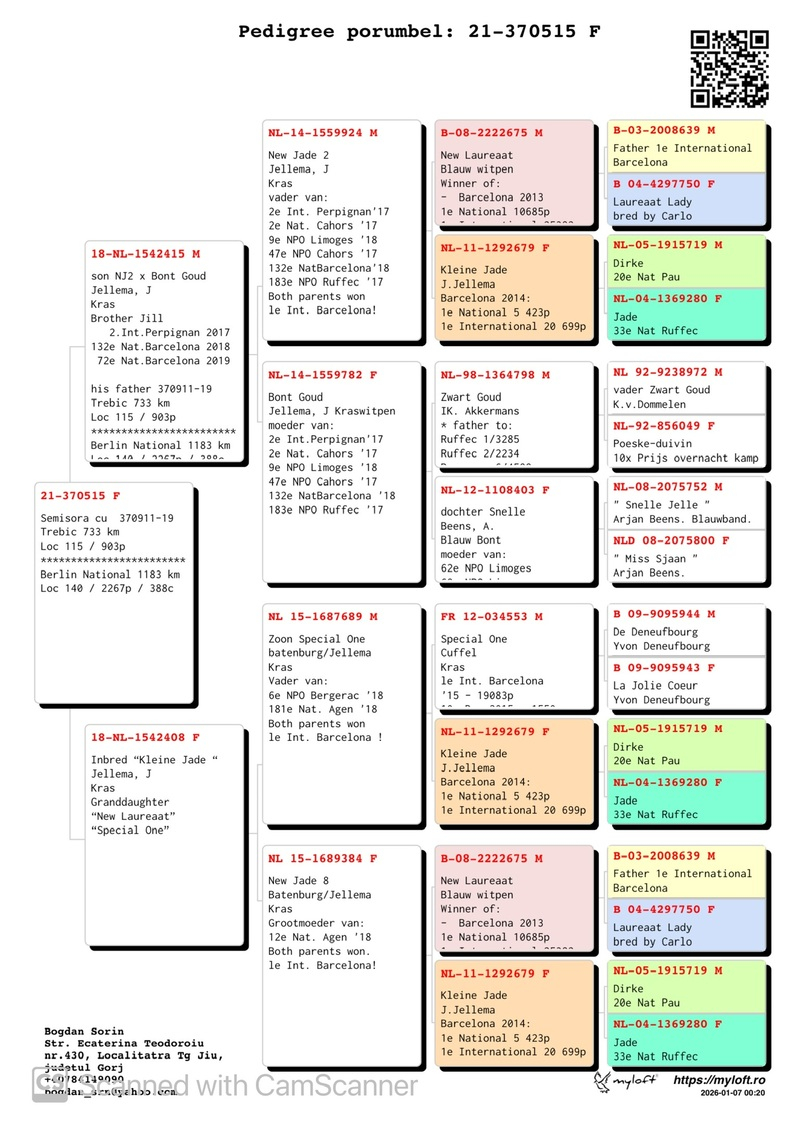 In his acquisitions, Mr. Sorin includes youngsters directly from the most prestigious names in Romania, as well as from the avian elite of Europe. His breeding stock comprises pigeons from internationally renowned breeders such as Gerard Schalwijk, Jelle Jellema, Kipp und Sohne, Cor de Heijde, Magirescu + Ojog + Dorneanu, among others. In this auction, you will find descendants from elite lines such as New Laureaat, Kleine Jade, Special One, Zwart Goud, Orange Oil, Barcelona King, Golden Glory, and many more.