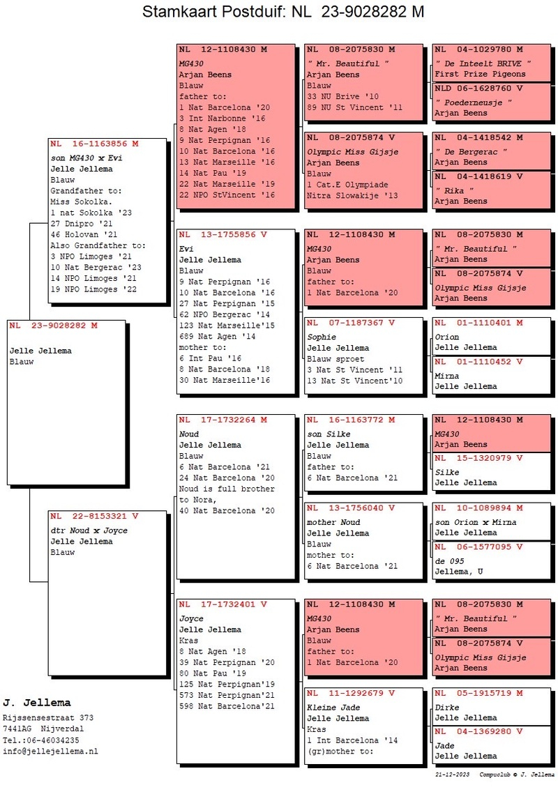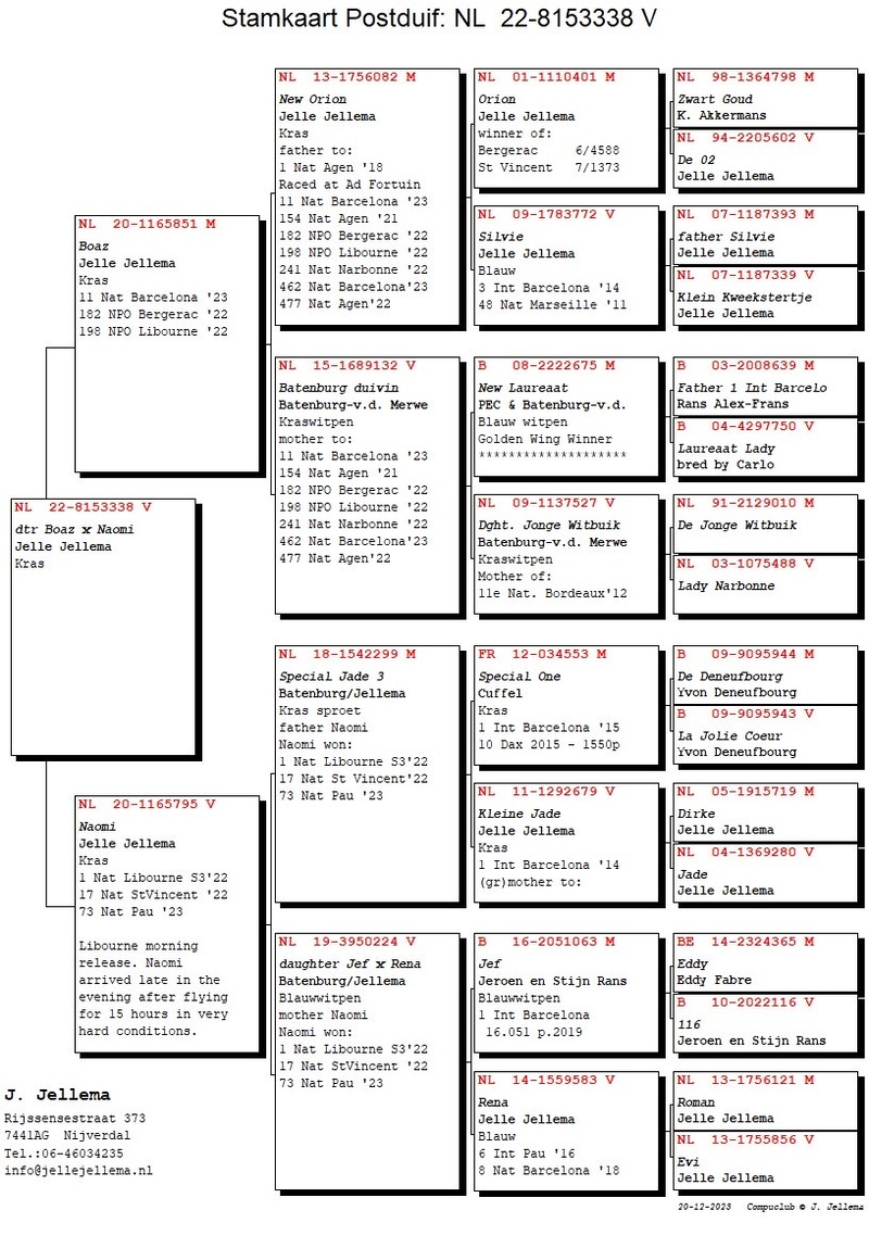In his acquisitions, Mr. Sorin includes youngsters directly from the most prestigious names in Romania, as well as from the avian elite of Europe. His breeding stock comprises pigeons from internationally renowned breeders such as Gerard Schalwijk, Jelle Jellema, Kipp und Sohne, Cor de Heijde, Magirescu + Ojog + Dorneanu, among others. In this auction, you will find descendants from elite lines such as New Laureaat, Kleine Jade, Special One, Zwart Goud, Orange Oil, Barcelona King, Golden Glory, and many more.