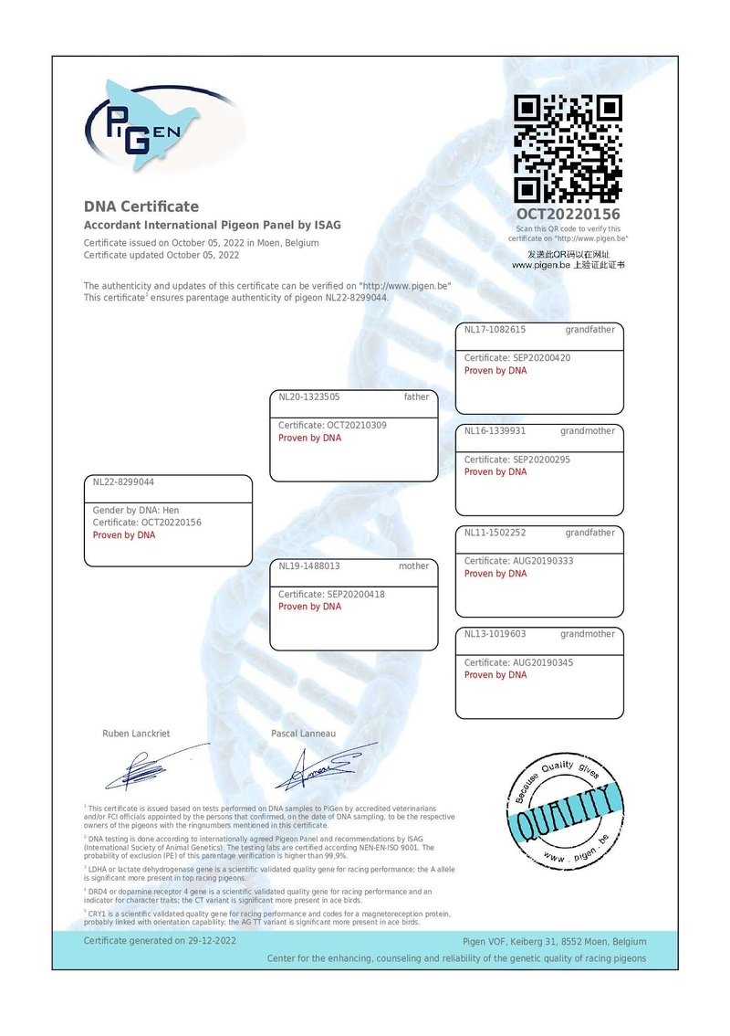 In his acquisitions, Mr. Sorin includes youngsters directly from the most prestigious names in Romania, as well as from the avian elite of Europe. His breeding stock comprises pigeons from internationally renowned breeders such as Gerard Schalwijk, Jelle Jellema, Kipp und Sohne, Cor de Heijde, Magirescu + Ojog + Dorneanu, among others. In this auction, you will find descendants from elite lines such as New Laureaat, Kleine Jade, Special One, Zwart Goud, Orange Oil, Barcelona King, Golden Glory, and many more.