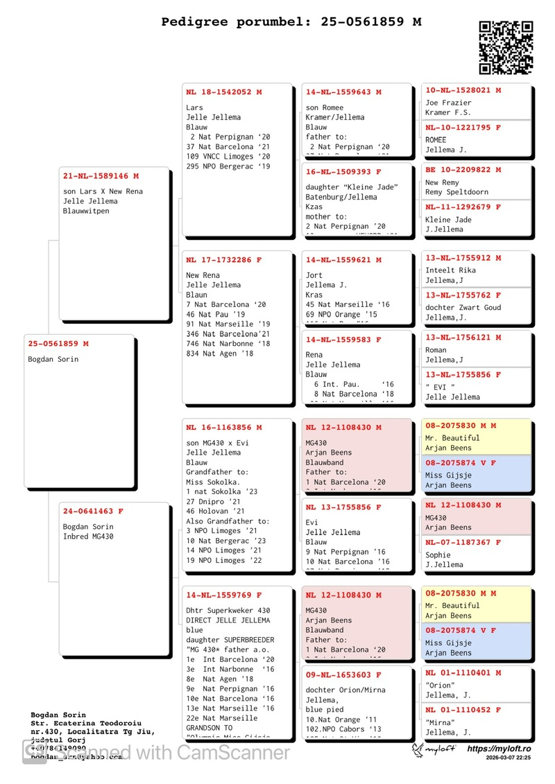 In his acquisitions, Mr. Sorin includes youngsters directly from the most prestigious names in Romania, as well as from the avian elite of Europe. His breeding stock comprises pigeons from internationally renowned breeders such as Gerard Schalwijk, Jelle Jellema, Kipp und Sohne, Cor de Heijde, Magirescu + Ojog + Dorneanu, among others. In this auction, you will find descendants from elite lines such as New Laureaat, Kleine Jade, Special One, Zwart Goud, Orange Oil, Barcelona King, Golden Glory, and many more.