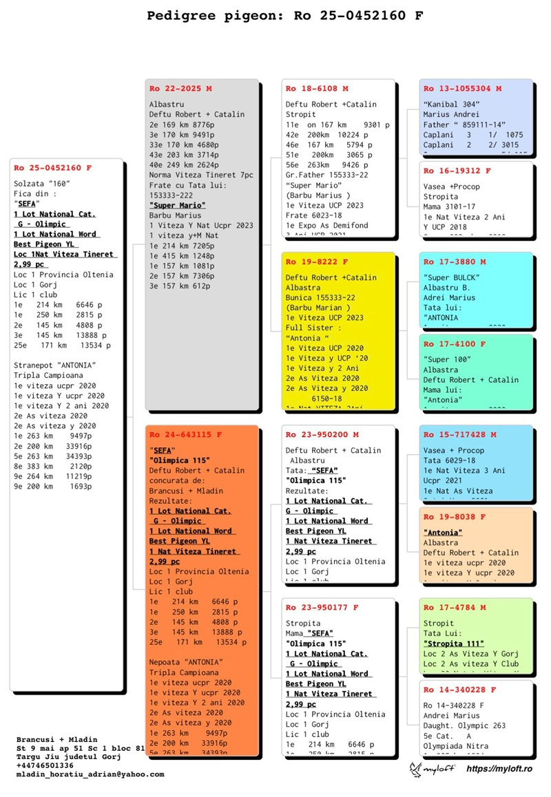 Through these achievements, the Brâncuși–Mladin tandem has not only consolidated the reputation of excellence of their loft but has also become a symbol of professionalism and dedication in pigeon racing. Their work serves as a source of inspiration for both young breeders and experienced enthusiasts, encouraging the pursuit of performance, perseverance, and continuous development in competitive pigeon sport.