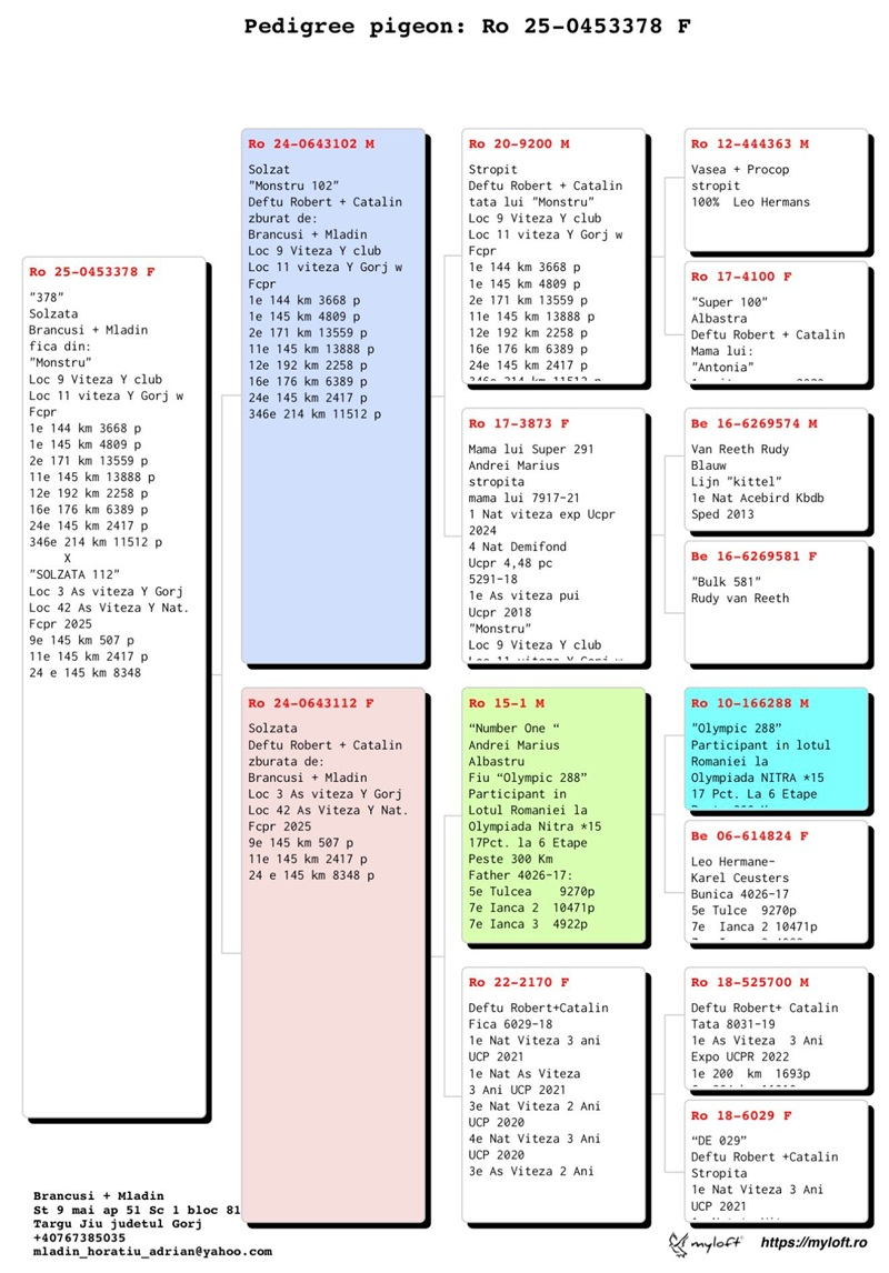 Through these achievements, the Brâncuși–Mladin tandem has not only consolidated the reputation of excellence of their loft but has also become a symbol of professionalism and dedication in pigeon racing. Their work serves as a source of inspiration for both young breeders and experienced enthusiasts, encouraging the pursuit of performance, perseverance, and continuous development in competitive pigeon sport.