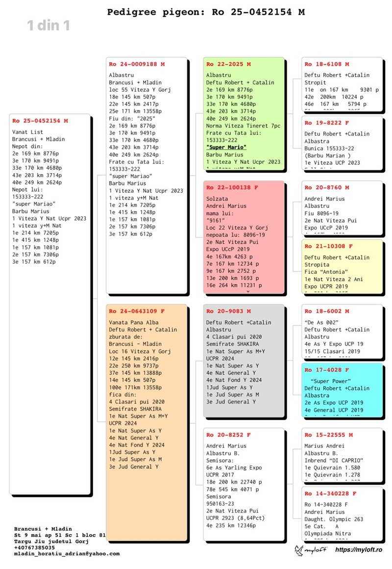 Through these achievements, the Brâncuși–Mladin tandem has not only consolidated the reputation of excellence of their loft but has also become a symbol of professionalism and dedication in pigeon racing. Their work serves as a source of inspiration for both young breeders and experienced enthusiasts, encouraging the pursuit of performance, perseverance, and continuous development in competitive pigeon sport.