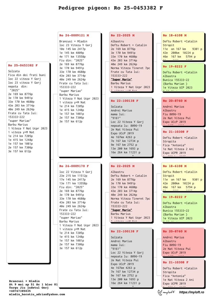 Through these achievements, the Brâncuși–Mladin tandem has not only consolidated the reputation of excellence of their loft but has also become a symbol of professionalism and dedication in pigeon racing. Their work serves as a source of inspiration for both young breeders and experienced enthusiasts, encouraging the pursuit of performance, perseverance, and continuous development in competitive pigeon sport.
