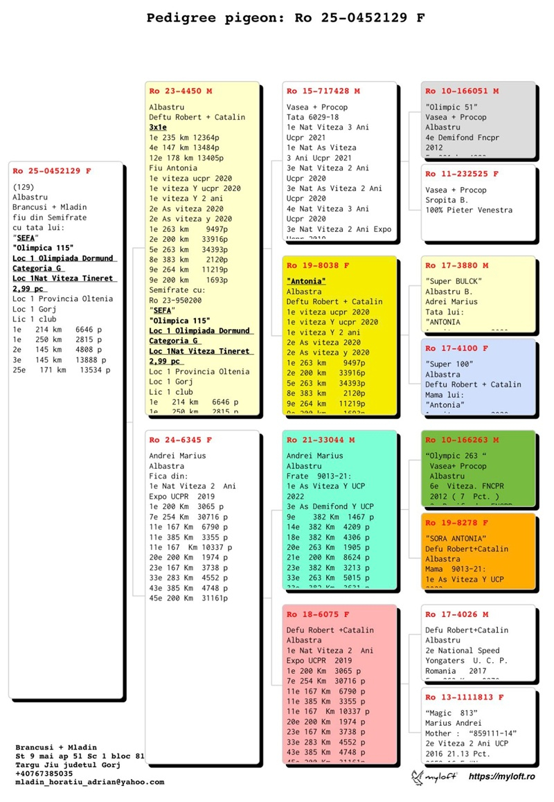 Through these achievements, the Brâncuși–Mladin tandem has not only consolidated the reputation of excellence of their loft but has also become a symbol of professionalism and dedication in pigeon racing. Their work serves as a source of inspiration for both young breeders and experienced enthusiasts, encouraging the pursuit of performance, perseverance, and continuous development in competitive pigeon sport.