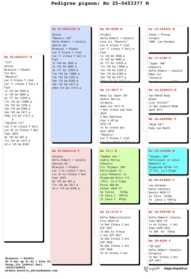 Through these achievements, the Brâncuși–Mladin tandem has not only consolidated the reputation of excellence of their loft but has also become a symbol of professionalism and dedication in pigeon racing. Their work serves as a source of inspiration for both young breeders and experienced enthusiasts, encouraging the pursuit of performance, perseverance, and continuous development in competitive pigeon sport.