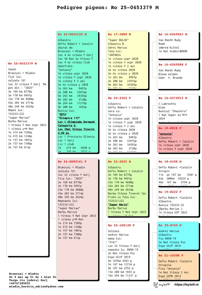 Through these achievements, the Brâncuși–Mladin tandem has not only consolidated the reputation of excellence of their loft but has also become a symbol of professionalism and dedication in pigeon racing. Their work serves as a source of inspiration for both young breeders and experienced enthusiasts, encouraging the pursuit of performance, perseverance, and continuous development in competitive pigeon sport.