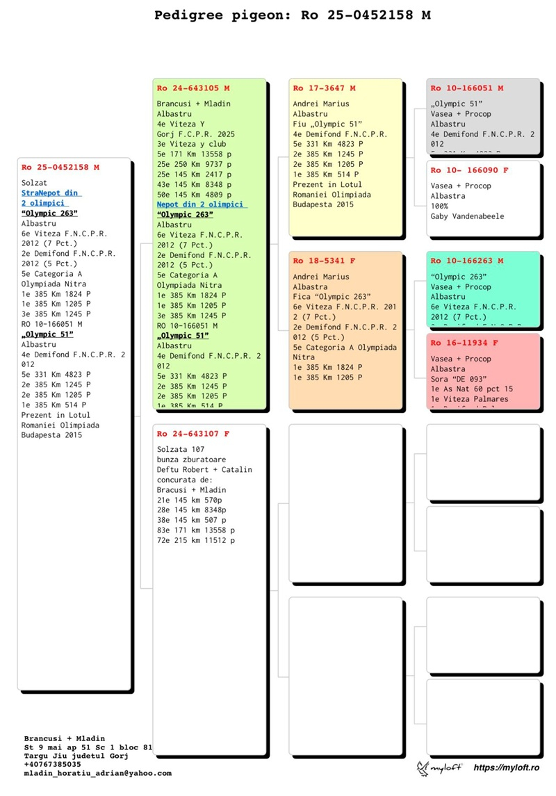 Through these achievements, the Brâncuși–Mladin tandem has not only consolidated the reputation of excellence of their loft but has also become a symbol of professionalism and dedication in pigeon racing. Their work serves as a source of inspiration for both young breeders and experienced enthusiasts, encouraging the pursuit of performance, perseverance, and continuous development in competitive pigeon sport.