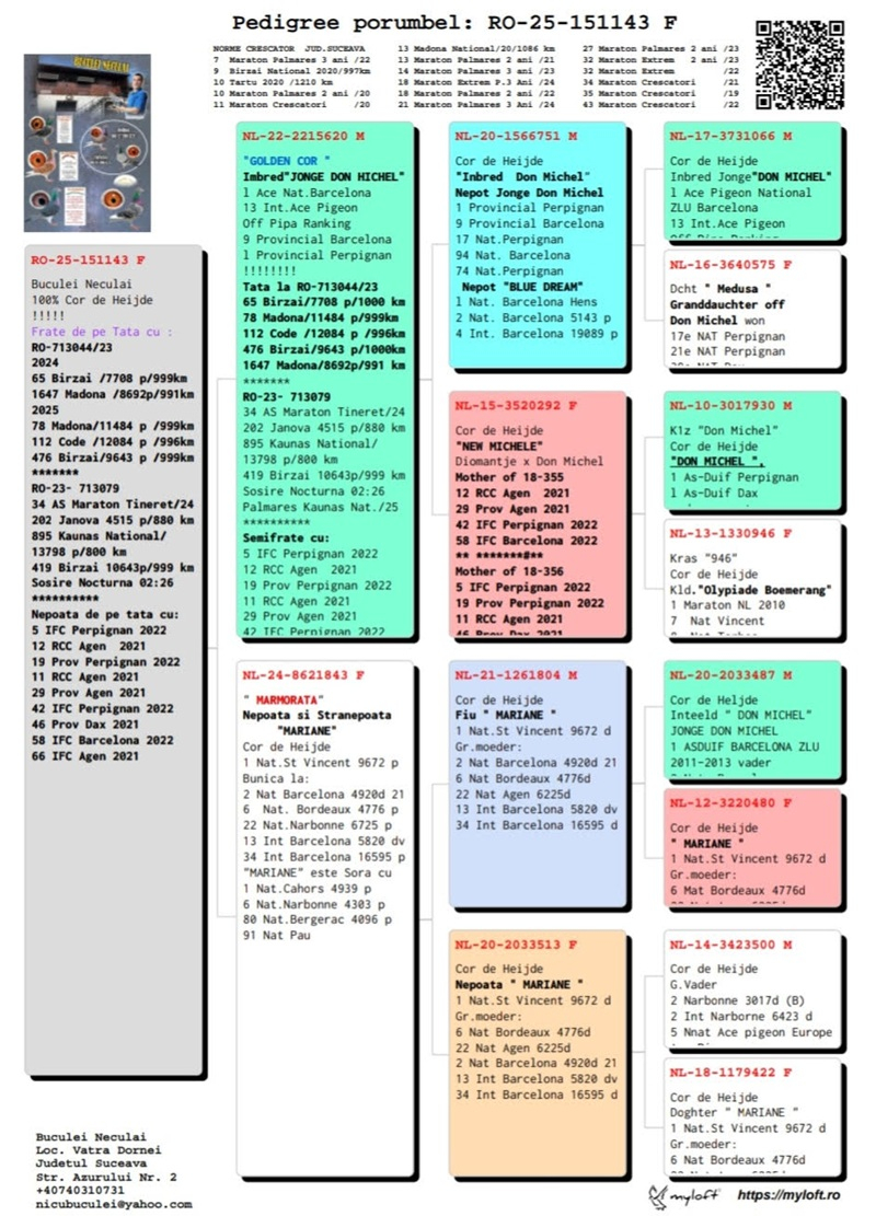 Thus, Mr. Buculei's efforts to source top genetic material from across Europe and Romania demonstrate not only a strategic approach but also a profound passion for pigeon racing. In an increasingly demanding competitive landscape, Mr. Buculei stands out for his innovation, perseverance, and a deep understanding of the factors that contribute to success in marathon races. Considering these aspects, it is no surprise that he is regarded as a leader in his field and a model for other breeders who aspire to excellence in this sport.