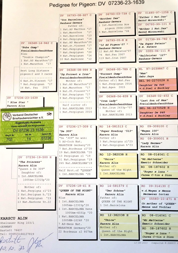 Thus, Mr. Buculei's efforts to source top genetic material from across Europe and Romania demonstrate not only a strategic approach but also a profound passion for pigeon racing. In an increasingly demanding competitive landscape, Mr. Buculei stands out for his innovation, perseverance, and a deep understanding of the factors that contribute to success in marathon races. Considering these aspects, it is no surprise that he is regarded as a leader in his field and a model for other breeders who aspire to excellence in this sport.