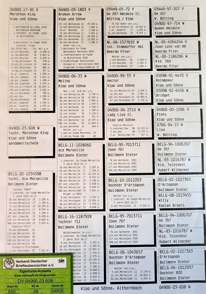 His breeding loft includes pigeons from elite breeders, recognized for their contribution to the development of pigeon racing worldwide. Among these breeders are Gerard Schalwijk, Gerard Van Tuyl, Cees Nijdeken, Sharlos, Frans Beleter, Frank Zwiers, Peter de Han, Win Gielen, Kipp und Söhne, Fraialdelhofen & Son, Etienne Mairlaen, FS. Kramer, and from Romania, prestigious breeders such as Magirescu, Ojog Dorneanu, the Aparaschivei Brothers, the Bodor Family, the Pristavu Family, Roman Claudiu, and Burciu Daniel.
