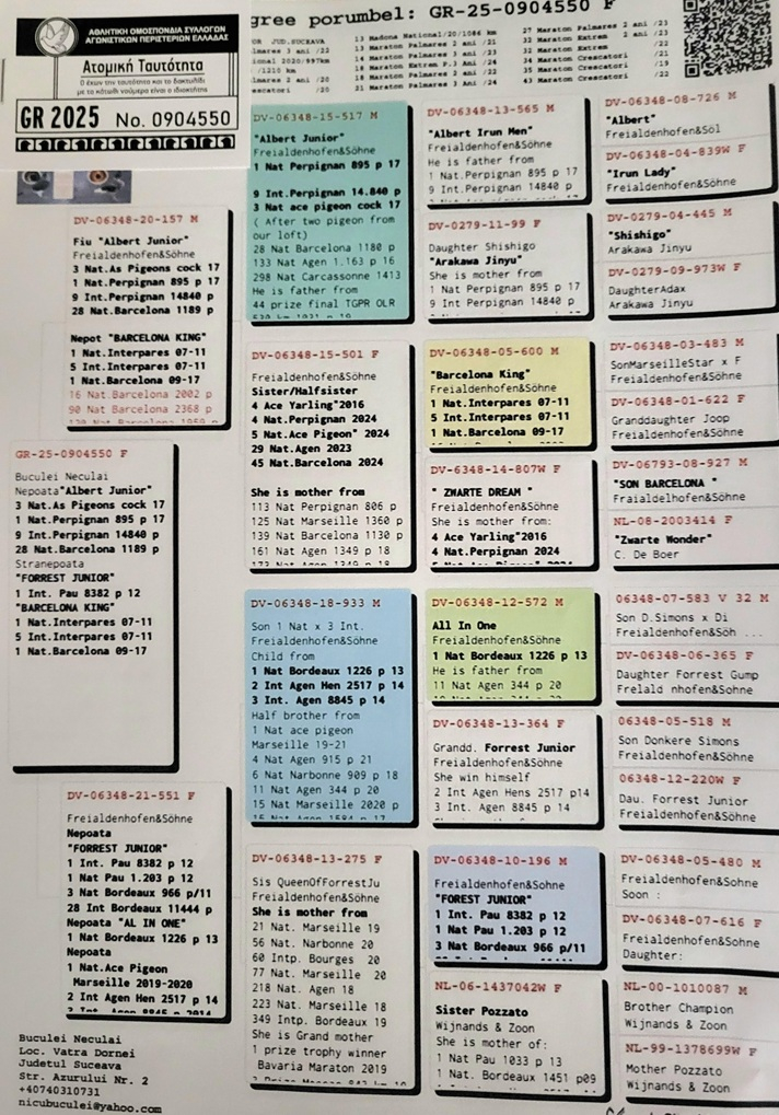 Thus, Mr. Buculei's efforts to source top genetic material from across Europe and Romania demonstrate not only a strategic approach but also a profound passion for pigeon racing. In an increasingly demanding competitive landscape, Mr. Buculei stands out for his innovation, perseverance, and a deep understanding of the factors that contribute to success in marathon races. Considering these aspects, it is no surprise that he is regarded as a leader in his field and a model for other breeders who aspire to excellence in this sport.