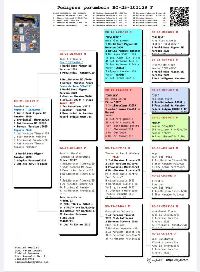 Thus, Mr. Buculei's efforts to source top genetic material from across Europe and Romania demonstrate not only a strategic approach but also a profound passion for pigeon racing. In an increasingly demanding competitive landscape, Mr. Buculei stands out for his innovation, perseverance, and a deep understanding of the factors that contribute to success in marathon races. Considering these aspects, it is no surprise that he is regarded as a leader in his field and a model for other breeders who aspire to excellence in this sport.