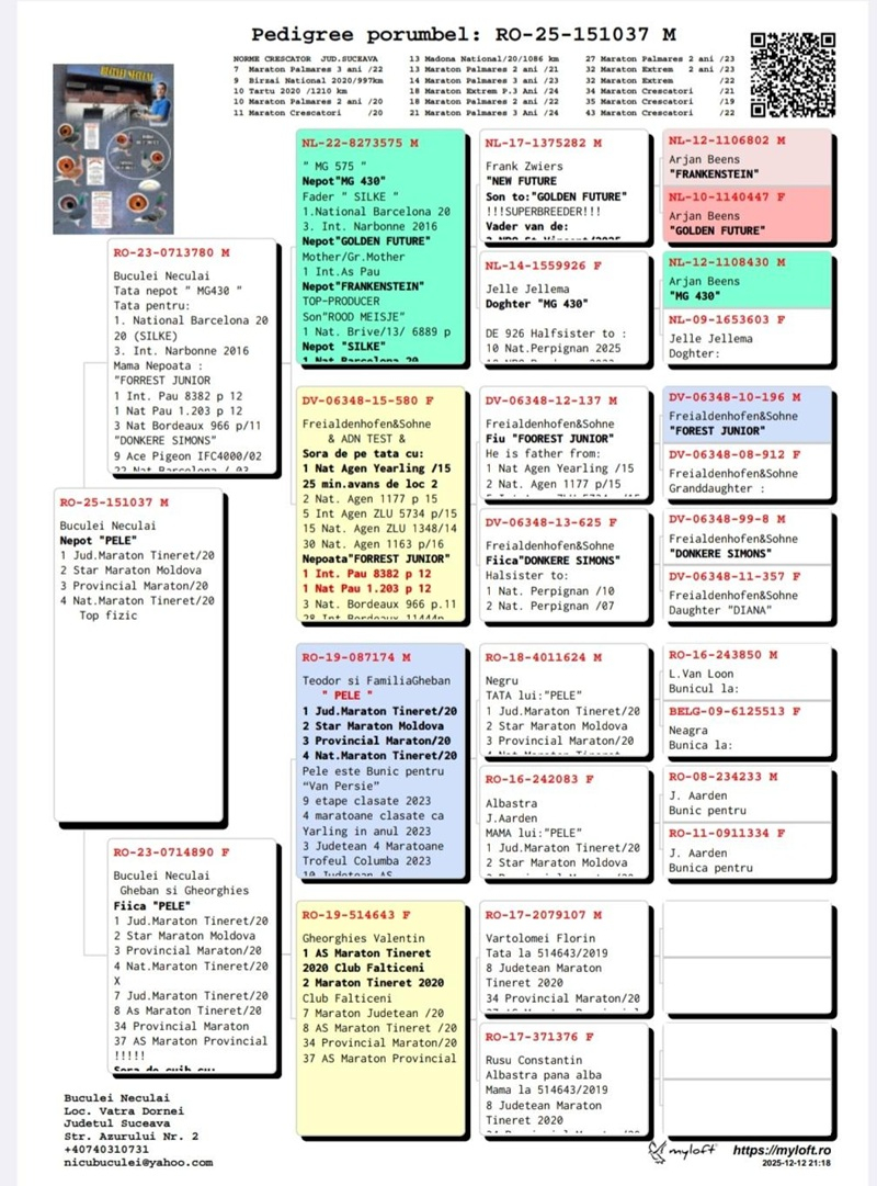 Thus, Mr. Buculei's efforts to source top genetic material from across Europe and Romania demonstrate not only a strategic approach but also a profound passion for pigeon racing. In an increasingly demanding competitive landscape, Mr. Buculei stands out for his innovation, perseverance, and a deep understanding of the factors that contribute to success in marathon races. Considering these aspects, it is no surprise that he is regarded as a leader in his field and a model for other breeders who aspire to excellence in this sport.