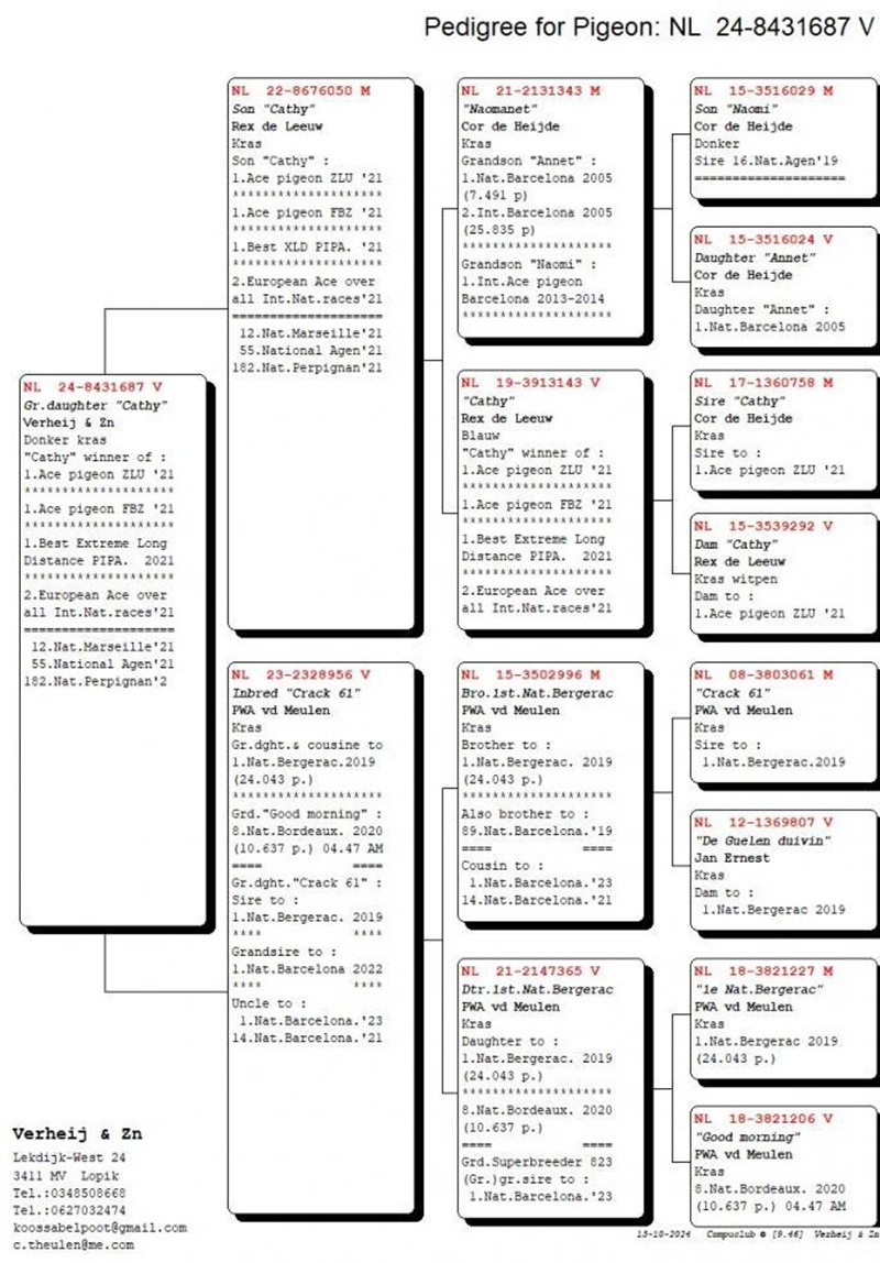 Thus, Mr. Buculei's efforts to source top genetic material from across Europe and Romania demonstrate not only a strategic approach but also a profound passion for pigeon racing. In an increasingly demanding competitive landscape, Mr. Buculei stands out for his innovation, perseverance, and a deep understanding of the factors that contribute to success in marathon races. Considering these aspects, it is no surprise that he is regarded as a leader in his field and a model for other breeders who aspire to excellence in this sport.