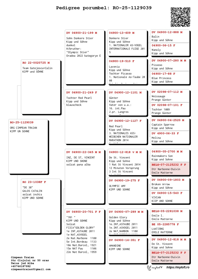 Traian Cîmpean stands out as a dedicated breeder with profound knowledge of pigeon racing, which enables him to practice this discipline at the highest standards of performance. From the very beginning of his career, he understood that success must be built upon a superior breeding foundation, and the results obtained in time have validated this vision. His breeding loft has been strengthened through the careful integration of pigeons from renowned Romanian fanciers, as well as from valuable genetic lines originating in Western Europe.