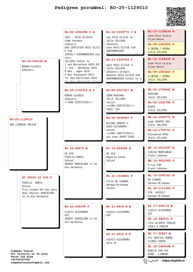 Traian Cîmpean stands out as a dedicated breeder with profound knowledge of pigeon racing, which enables him to practice this discipline at the highest standards of performance. From the very beginning of his career, he understood that success must be built upon a superior breeding foundation, and the results obtained in time have validated this vision. His breeding loft has been strengthened through the careful integration of pigeons from renowned Romanian fanciers, as well as from valuable genetic lines originating in Western Europe.