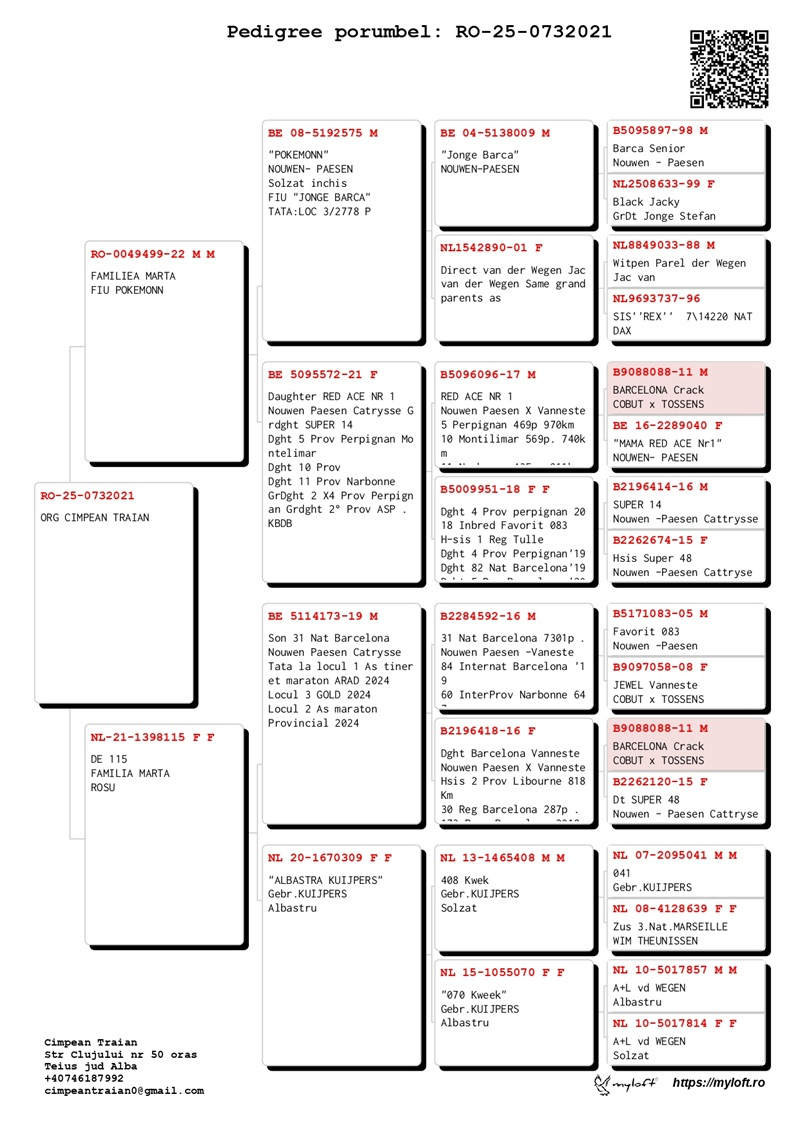As an enthusiast of competitions of all types, Traian Cîmpean distinguishes himself through his versatility, achieving remarkable performances both in short-distance and marathon races. The exceptional quality of his pigeons, combined with his advanced expertise and rigor, has represented a decisive advantage in his competitive trajectory. Within a relatively short period, he succeeded in winning 1st place in the National Ace category in the Province of Transylvania, thereby confirming his excellence and commitment within the national pigeon racing scene.