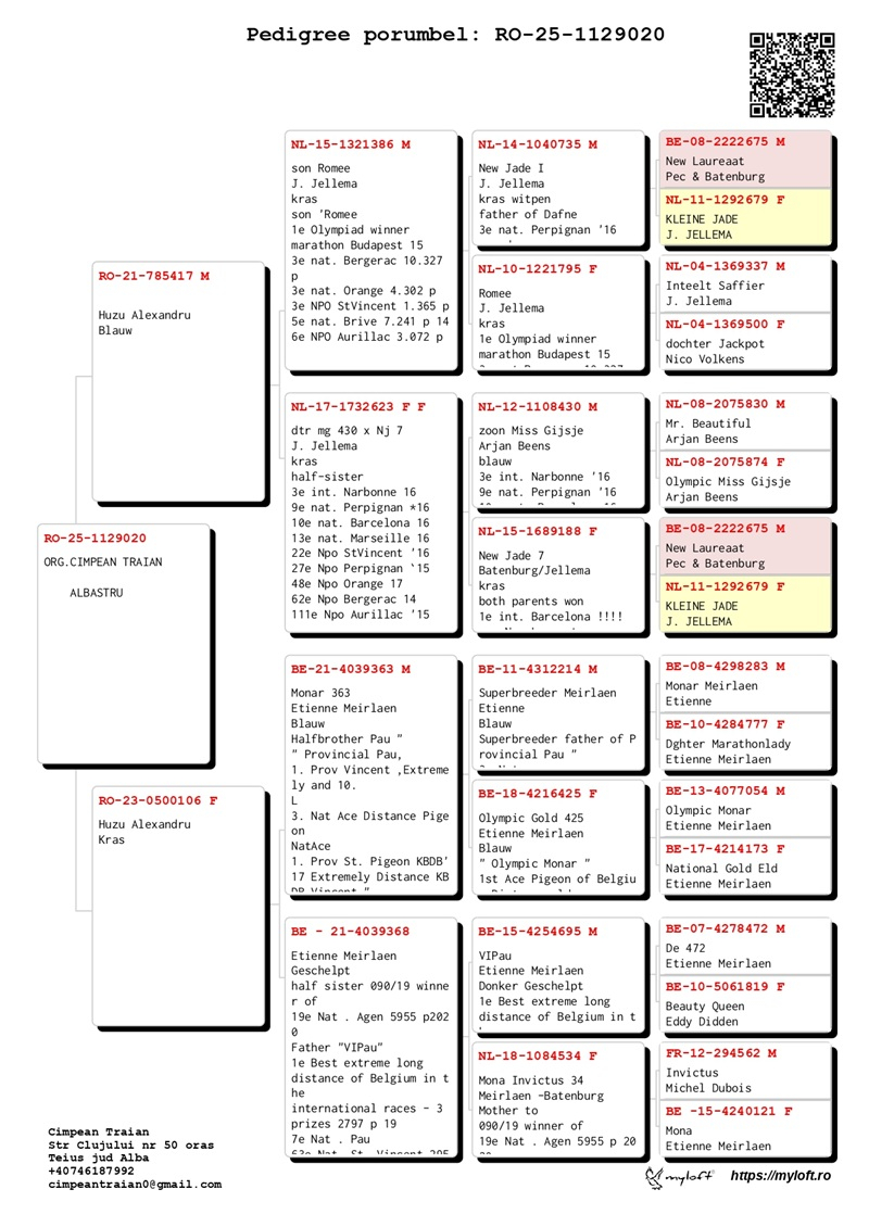 As an enthusiast of competitions of all types, Traian Cîmpean distinguishes himself through his versatility, achieving remarkable performances both in short-distance and marathon races. The exceptional quality of his pigeons, combined with his advanced expertise and rigor, has represented a decisive advantage in his competitive trajectory. Within a relatively short period, he succeeded in winning 1st place in the National Ace category in the Province of Transylvania, thereby confirming his excellence and commitment within the national pigeon racing scene.