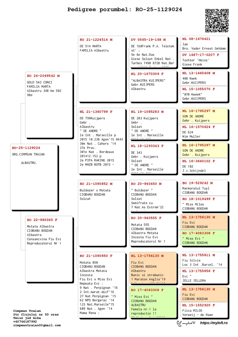 Traian Cîmpean stands out as a dedicated breeder with profound knowledge of pigeon racing, which enables him to practice this discipline at the highest standards of performance. From the very beginning of his career, he understood that success must be built upon a superior breeding foundation, and the results obtained in time have validated this vision. His breeding loft has been strengthened through the careful integration of pigeons from renowned Romanian fanciers, as well as from valuable genetic lines originating in Western Europe.