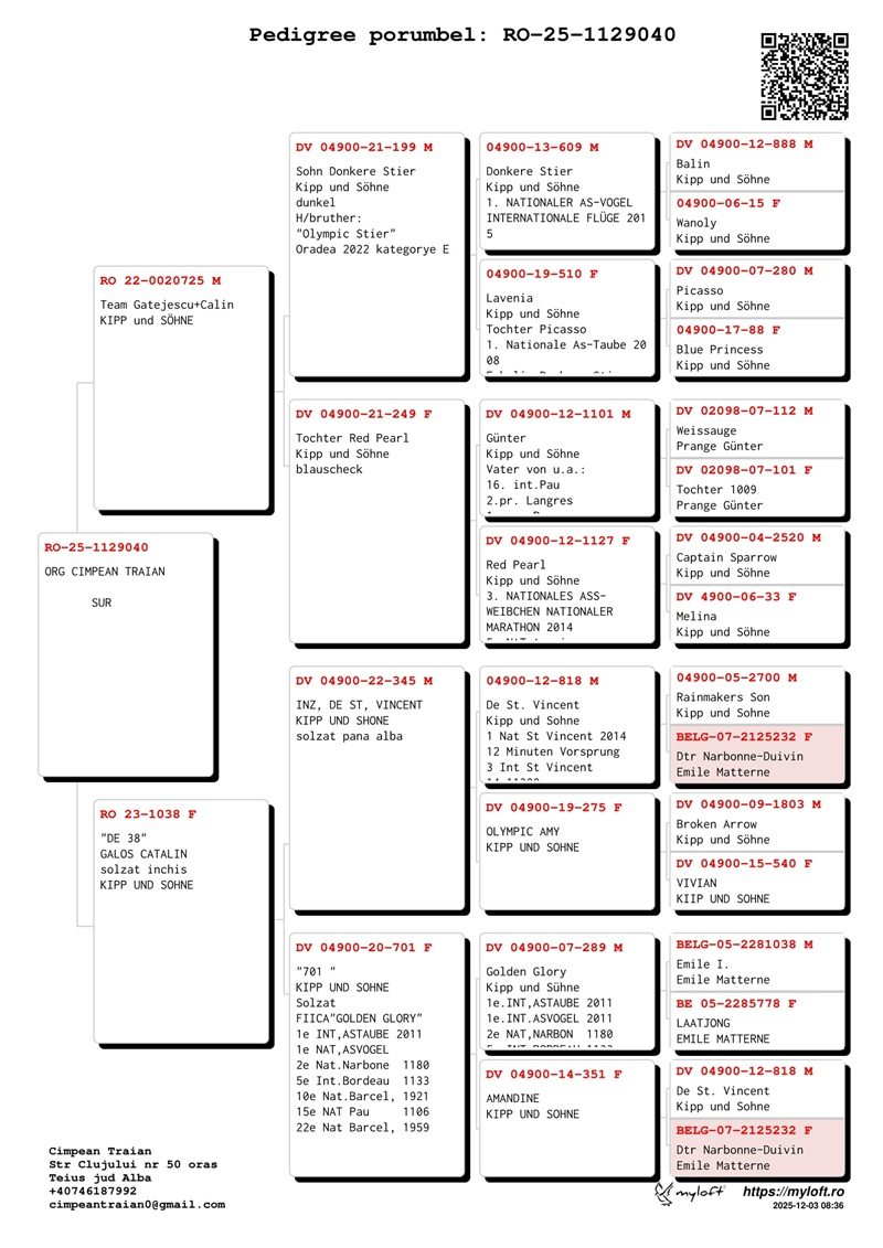 As an enthusiast of competitions of all types, Traian Cîmpean distinguishes himself through his versatility, achieving remarkable performances both in short-distance and marathon races. The exceptional quality of his pigeons, combined with his advanced expertise and rigor, has represented a decisive advantage in his competitive trajectory. Within a relatively short period, he succeeded in winning 1st place in the National Ace category in the Province of Transylvania, thereby confirming his excellence and commitment within the national pigeon racing scene.