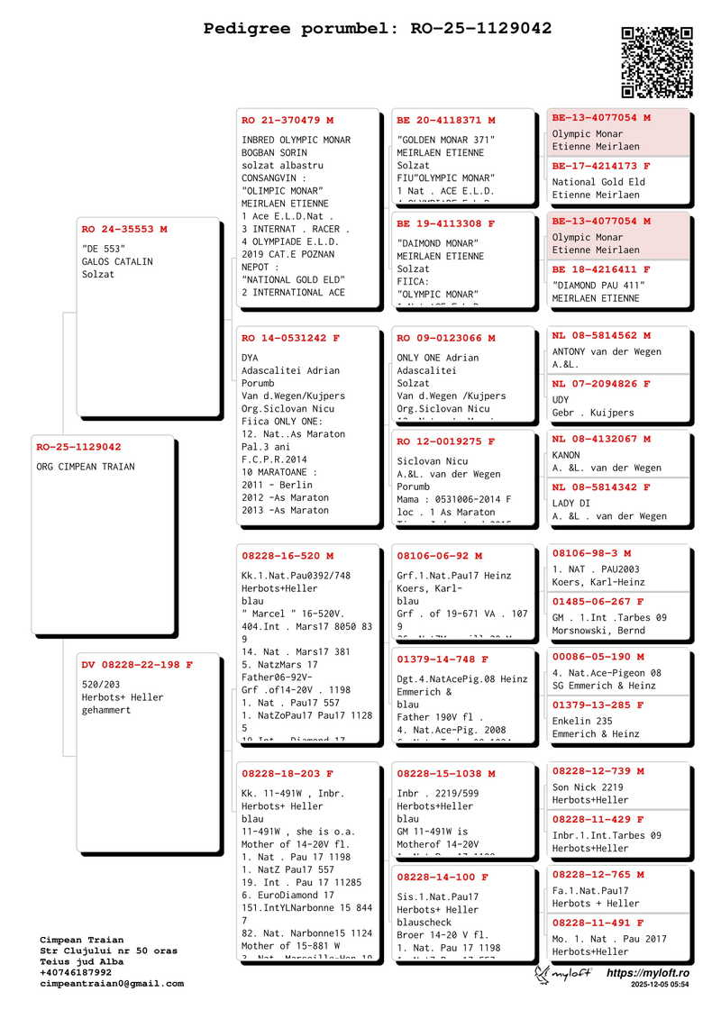 As an enthusiast of competitions of all types, Traian Cîmpean distinguishes himself through his versatility, achieving remarkable performances both in short-distance and marathon races. The exceptional quality of his pigeons, combined with his advanced expertise and rigor, has represented a decisive advantage in his competitive trajectory. Within a relatively short period, he succeeded in winning 1st place in the National Ace category in the Province of Transylvania, thereby confirming his excellence and commitment within the national pigeon racing scene.