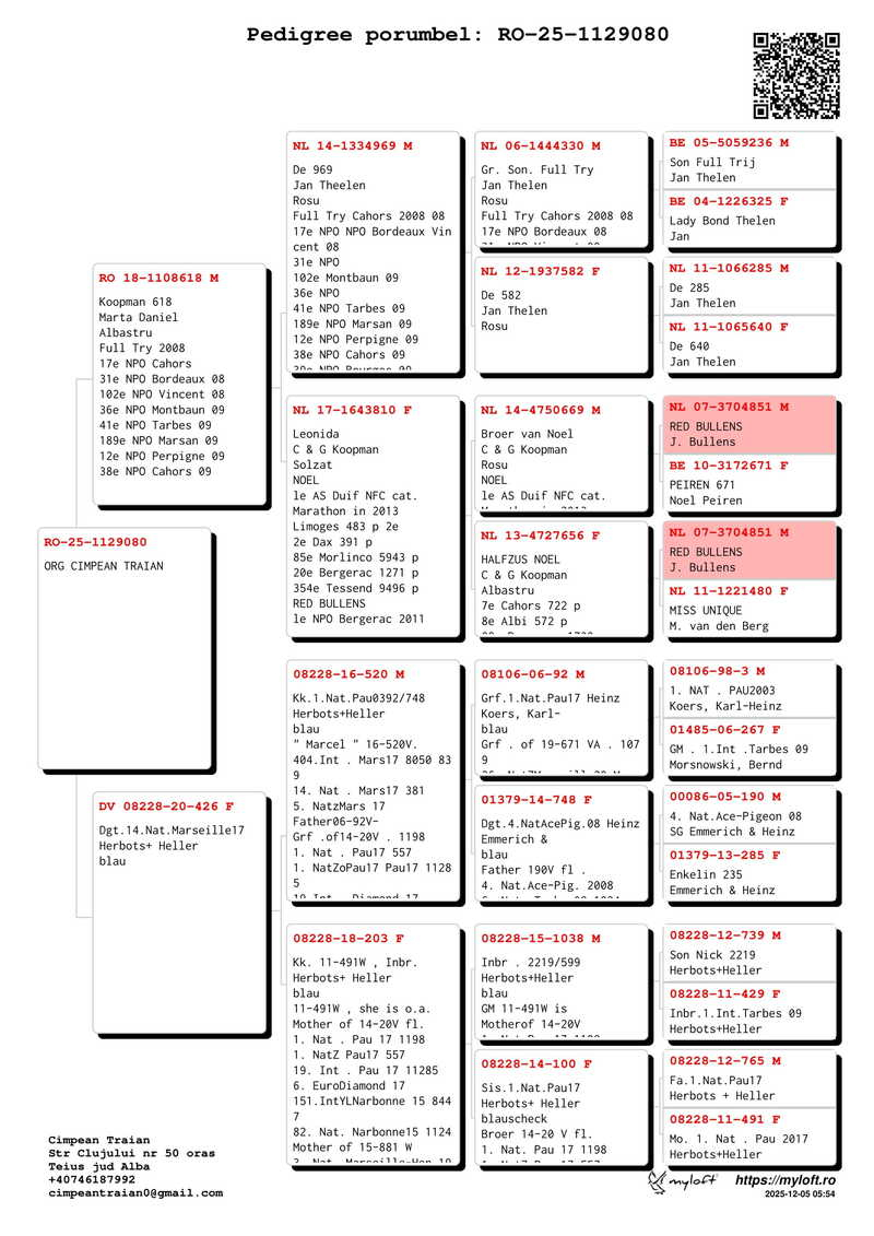 Traian Cîmpean stands out as a dedicated breeder with profound knowledge of pigeon racing, which enables him to practice this discipline at the highest standards of performance. From the very beginning of his career, he understood that success must be built upon a superior breeding foundation, and the results obtained in time have validated this vision. His breeding loft has been strengthened through the careful integration of pigeons from renowned Romanian fanciers, as well as from valuable genetic lines originating in Western Europe.