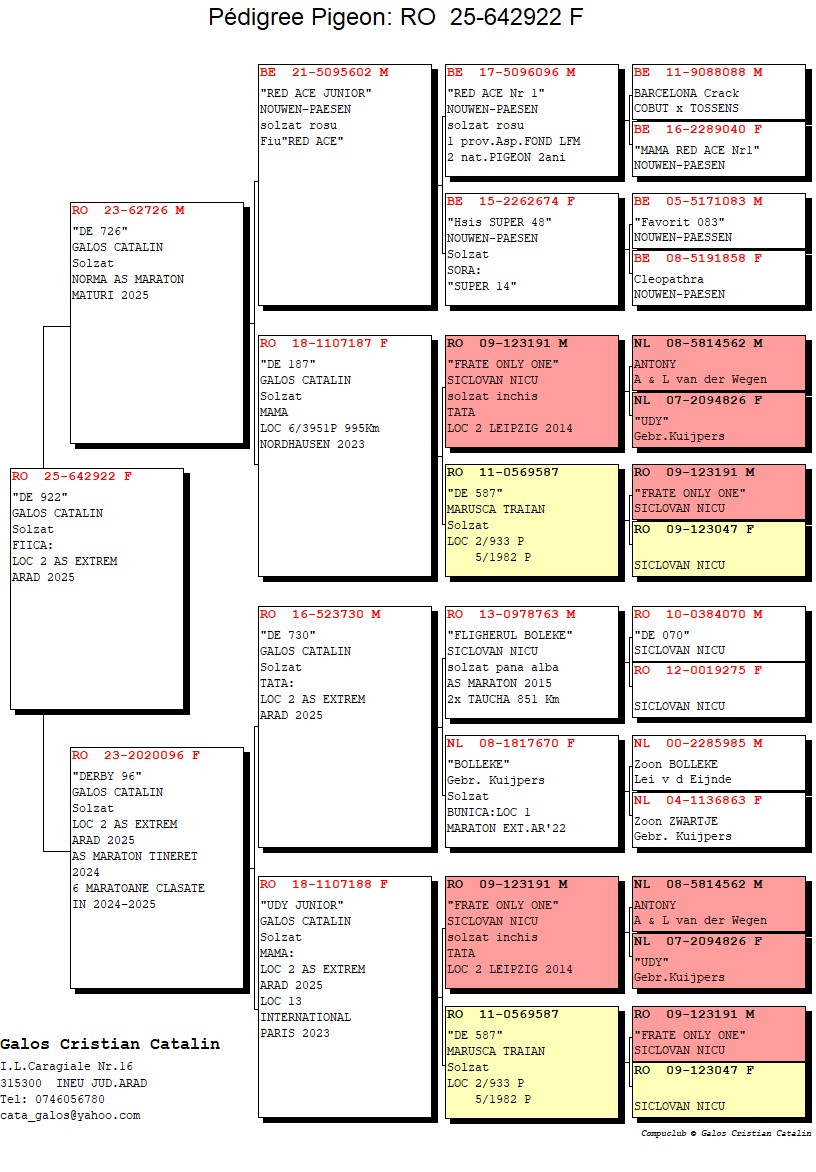 These results highlight not only professionalism and consistency in pigeon racing but also a clearly defined strategy in genetic selection, training, and sporting management. The outstanding performances achieved by his pigeons confirm Galoș Cătălin’s position among the leading breeders in the region and contribute to strengthening the prestige of marathon and extreme marathon competitions in Romania.