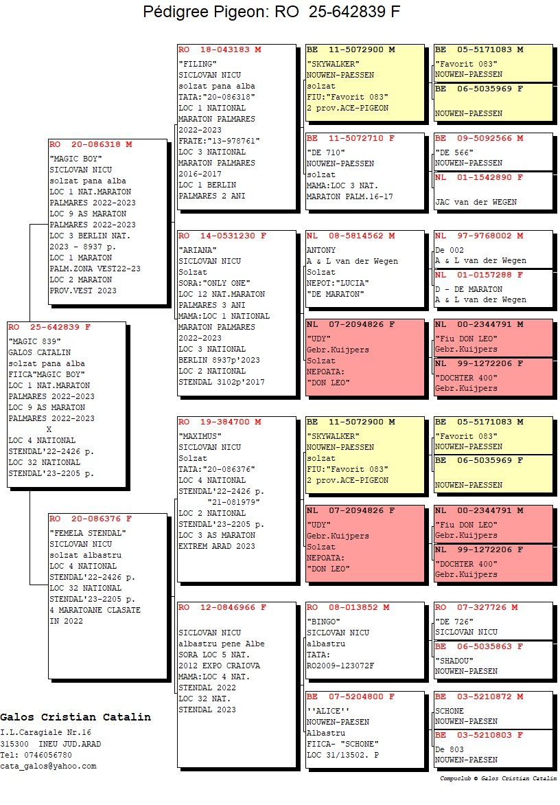 These results highlight not only professionalism and consistency in pigeon racing but also a clearly defined strategy in genetic selection, training, and sporting management. The outstanding performances achieved by his pigeons confirm Galoș Cătălin’s position among the leading breeders in the region and contribute to strengthening the prestige of marathon and extreme marathon competitions in Romania.